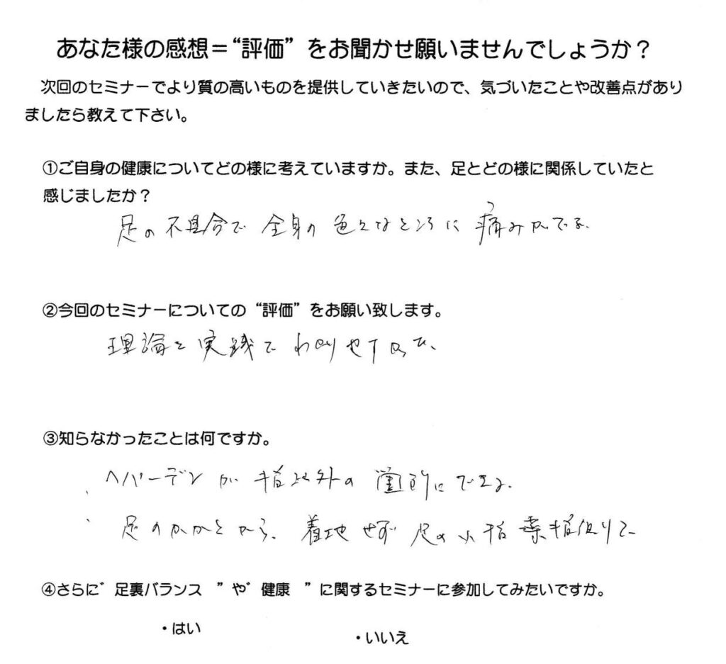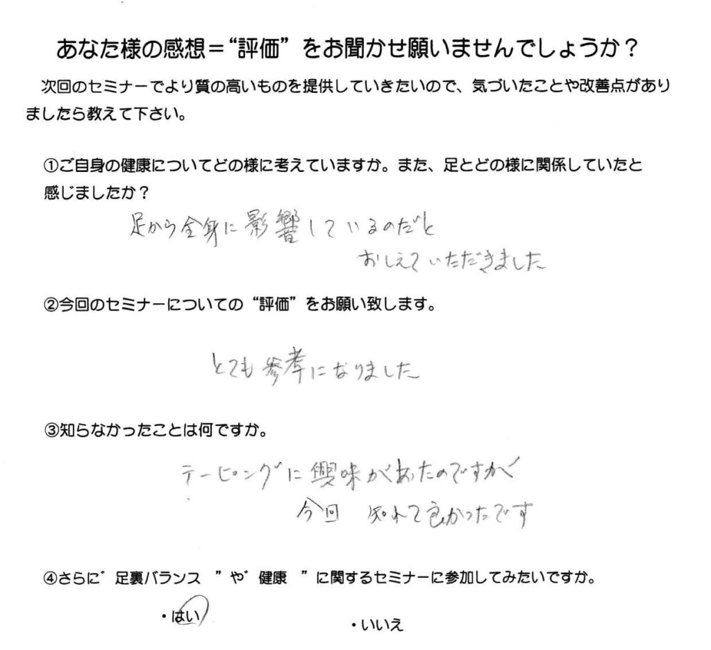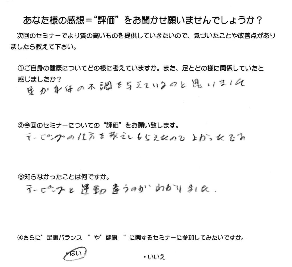 足裏バランステーピング講座参加者の皆様より 2026.1.24